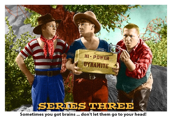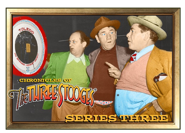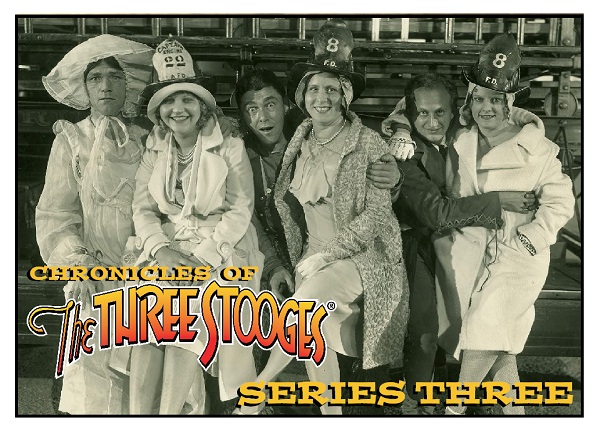 Wondering what the 10 different Chronicles of The Three Stooges Series 3 promo cards in the current Apr/May ’15 issue of Non-Sport Update look like? We’re here to help! You can see them all below. And for good measure, we’ve thrown in images of the two promos that complete the set of 12. These can be found at the upcoming Chicago Non-Sport Card Show (April 17 & 18 in Carol Stream, IL) and the Philly Non-Sports Card Show (May 2 & 3 in Allentown, PA).